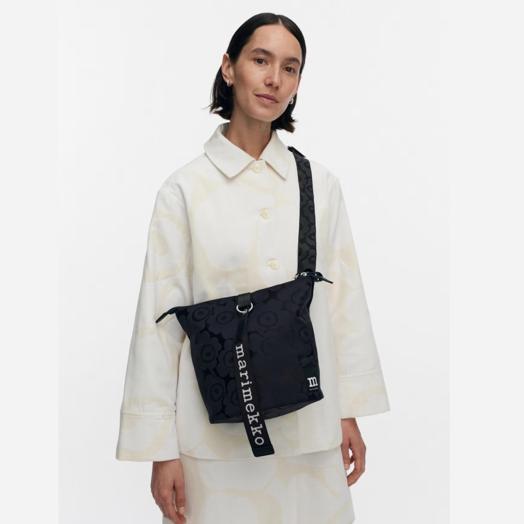 Laukku sulkeutuu vetoketjulla ja siinä on kantokahva sekä säädettävä, kierrätetystä polyamidista valmistettu olkahihna, jossa on jacquard-kudottu Unikko-kuosi. Laukussa on yksi sisätasku sekä yksi avoin ulkotasku, jossa on magneettinappisuljenta. Etupuolelle on kiinnitetty Marimekko-avaimenperä. Laukussa on nahkaisia yksityiskohtia.