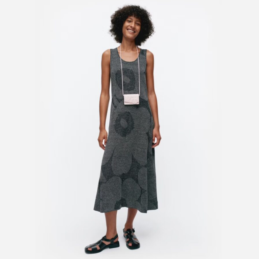 Marimekon pellavainen mekko. Kaunis A-linjainen malli pohjepituinen mitta.
