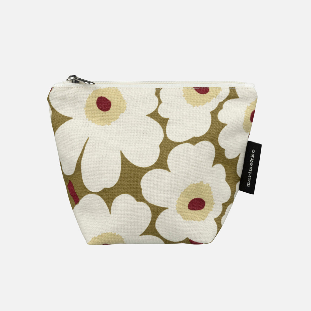 Kait-kosmetiikkalaukku on valmistettu Mini Unikko häivähdys -kuosisesta puuvillasta. Laukussa on vetoketjusuljenta ja kierrätetystä polyesterista valmistettu sisävuori.