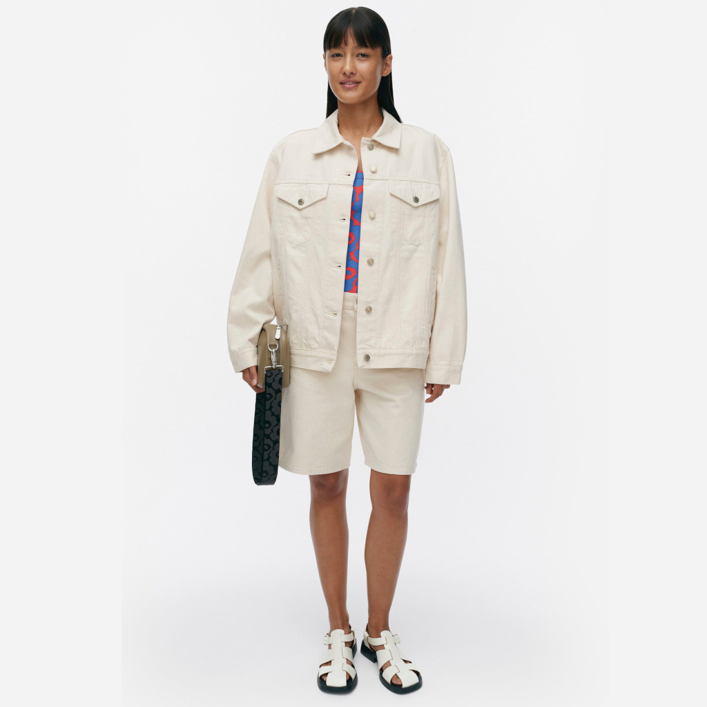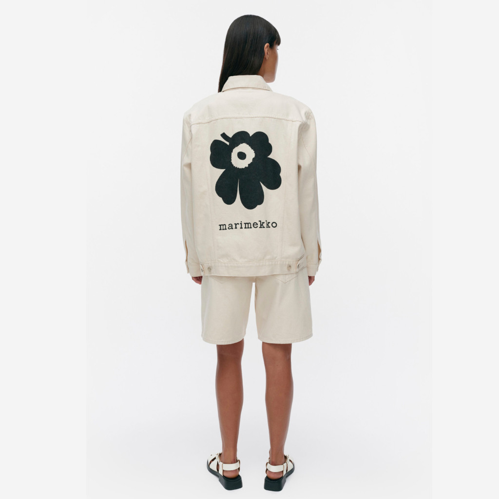Marimekon Ystävyys farkkutakki on valmistettu luomupuuvillatvillistä, siinä on väljä istuvuus.