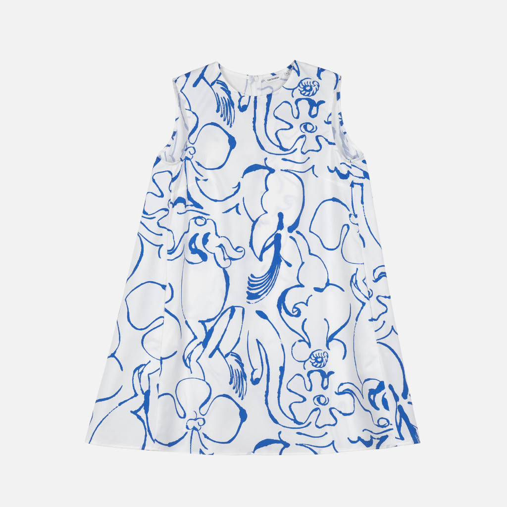 Palatsi-minimekko on valmistettu luomupuuvillatvillistä, ja siinä on niukka istuvuus sekä A-linjainen leikkaus. Tuote sisältää 4 % elastaania. Hihattomassa mekossa on Baluns-kuosi, joka on painettu Helsingissä, sekä pyöreä pääntie, jossa on piilovetoketju takasaumassa. Lyhyessä mekossa on kellotettu selkäkappale ja sivusaumataskut.