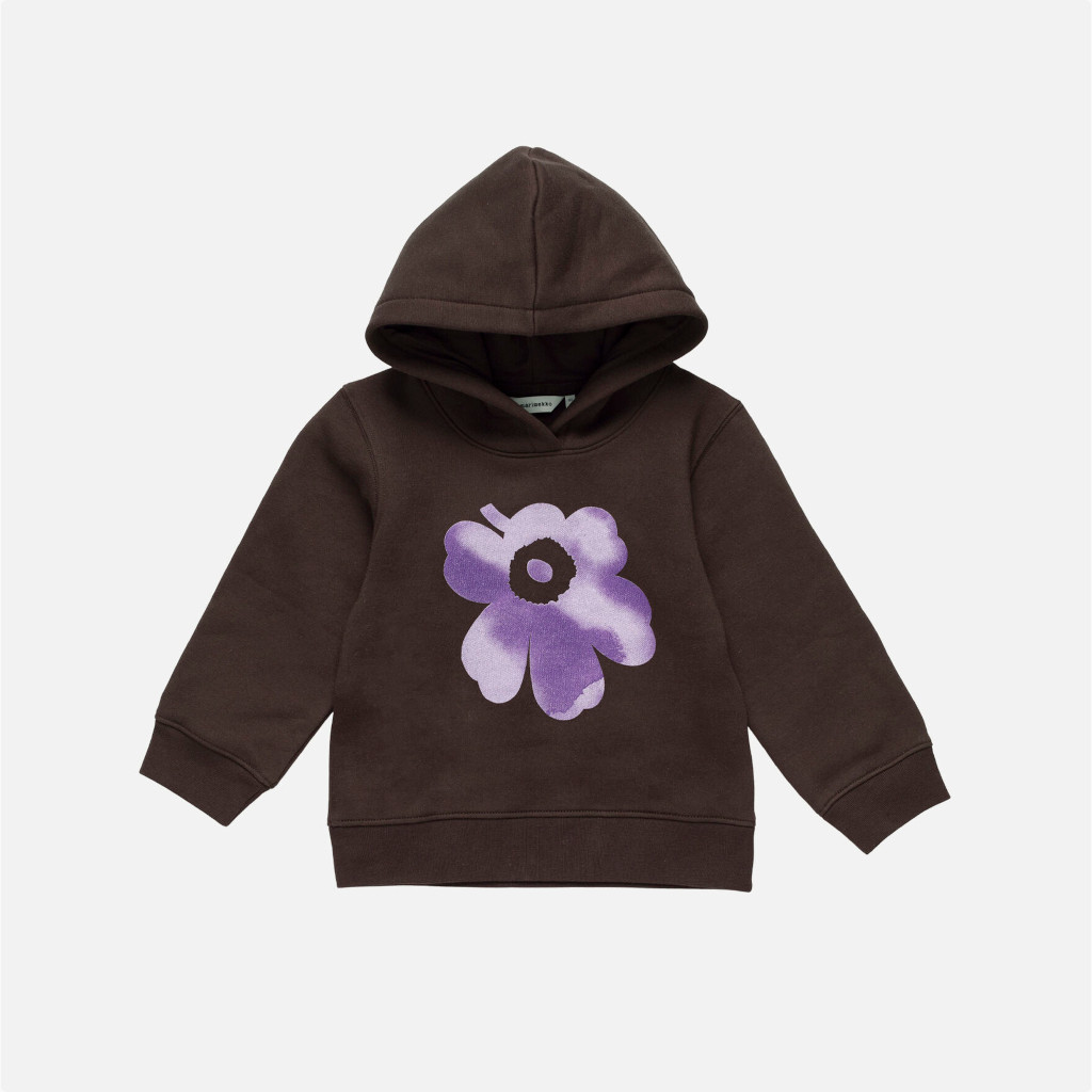 Lasten Tavaton-huppari on valmistettu collegesta ja siinä on rento istuvuus. Etupuolelle on painettu suuri Akvarelli Unikko-kukka, joka näyttää ikään kuin vesiväreillä maalatulta. Hihansuissa sekä helmassa on leveät resorit.