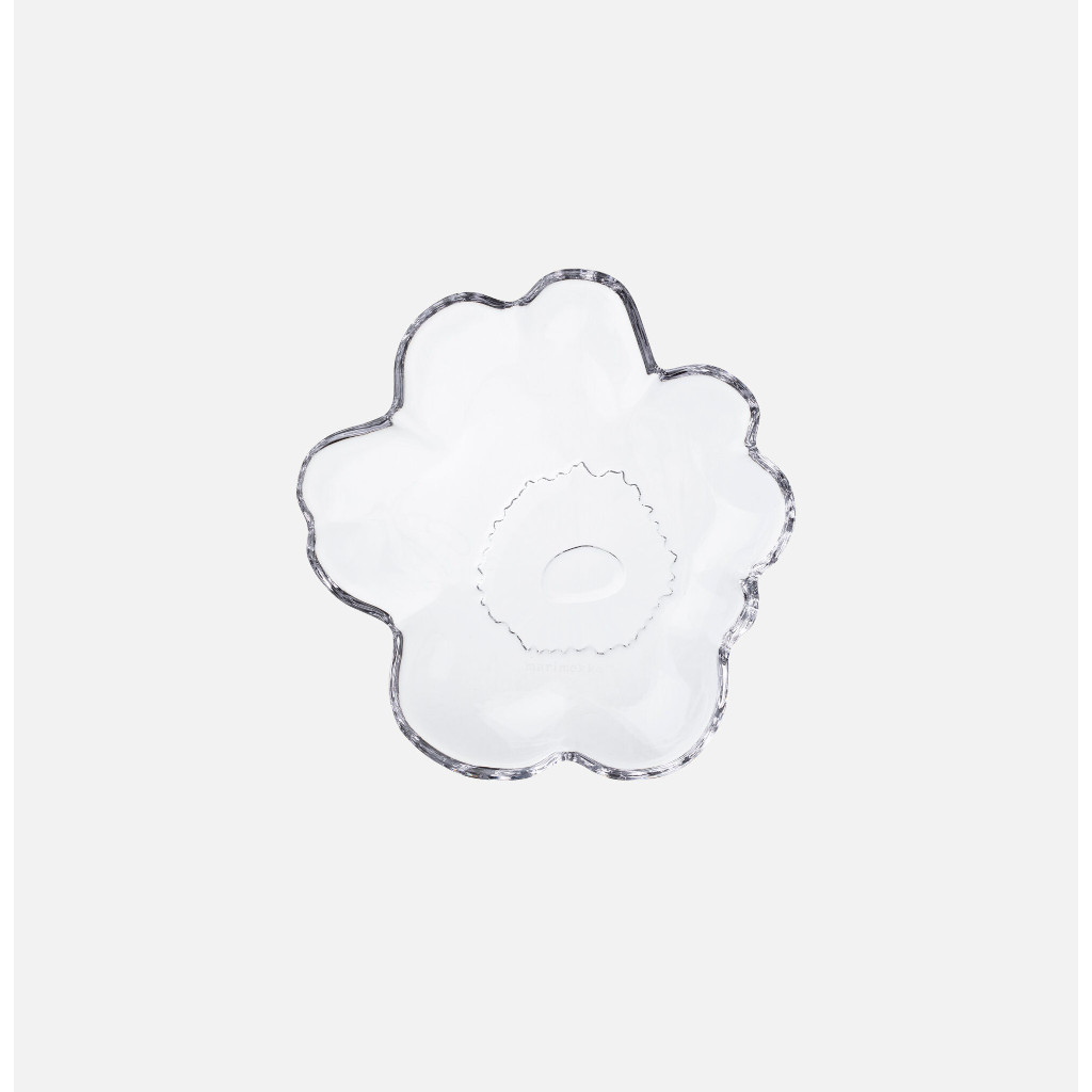 Pieni lasilautanen on valmistettu Unikko-kukan malliseksi. Suosittelemme lautaselle käsinpesua.